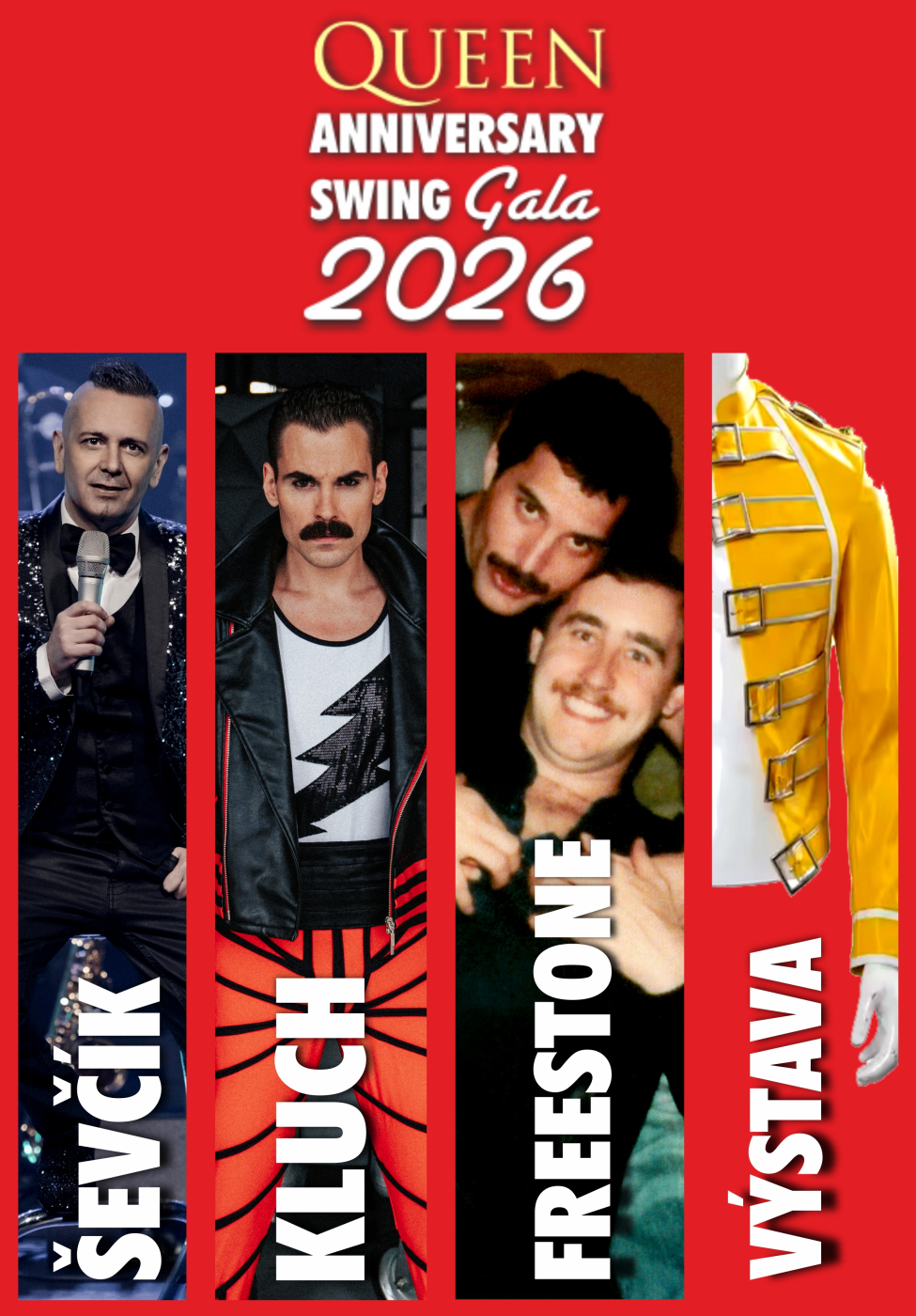 Unikátní projekt Queen Anniversary Swing Gala 2026 bude jedinou oficiální oslavou queenovských milníků ve střední Evropě a uskuteční se pouze ve třech městech – v Ústí nad Orlicí (19. října, Roškotovo divadlo), v Hradci Králové (4. listopadu, Kongresové centrum Aldis) a v Pardubicích (9. listopadu, Dům hudby).
